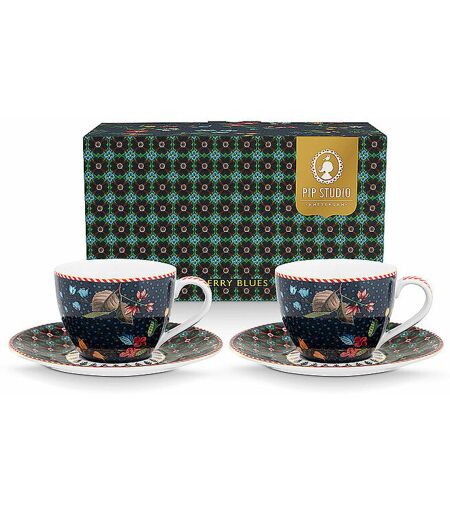 PIP STUDIO Espressotasse mit Untertasse 2-er Set BERRY BLUES 120ml Blue dunkelblau B