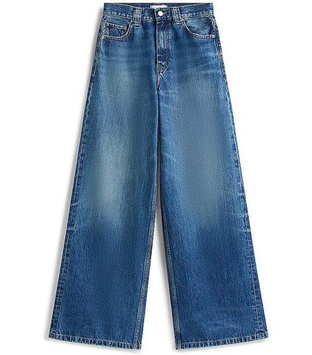 Damen Jeans aus Denim Mittlere Leibhöhe Schließt mit Knopf- und Reißverschluss 5-Pocket-Style Weites Bein Unifarben mit heller Waschung Farbbezeichnung: Denim Material: 100 % Baumwolle ...