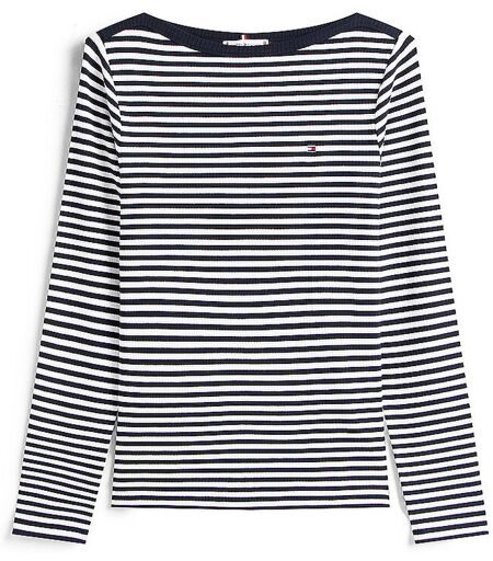 Damen Langarmshirt aus Jersey U-Boot-Ausschnitt Langarm Logo an der Brust Ringelmuster Gerade geschnitten Farbbezeichnung: Blue Material: 95 % Viskose, 5 % Elasthan ...