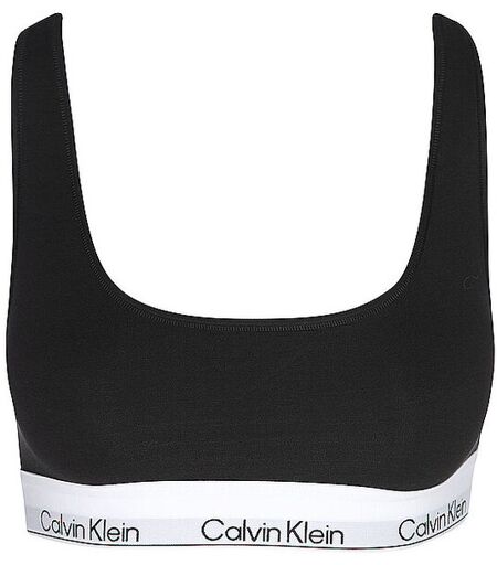 Damen Bustier aus Baumwoll-Modal-Mischung mit Stretch-Anteil Rundhalsausschnitt Racer-Back Elastisches Unterbrustband mit Logo-Print Farbbezeichnung: Black Material: 53% Baumwolle, 35% Modal, 12% Elasthan ...