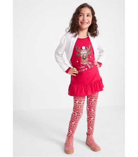 Weihnachtliches Shirt mit Elch-Motiv und Leggings für Mädchen. Langarmshirt mit Volant und Leggings mit tollem Allover-Print. ...