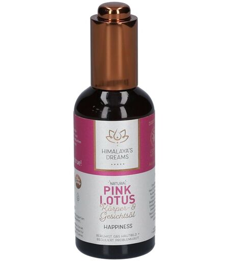 Himalaya's Dreams ayurvedisches Pink Lotus Körper- und Gesichtsöl 100 ml Das ayurvedische Pink Lotus Öl von Himalaya's Dreams ist optimal zur Regulierung einer Problemhaut geeignet. Es kann sowohl für Körper als auch Gesicht verwendet werden. Das Pink Lotus Öl hat einen betörenden Duft nach Ylang-Ylang, welches in der Aromatherapie oft bei Spannung und Stress verwendet wird. Die enthaltene Reiskleie versorgt die Haut mit vielen wichtigen Nährstoffen. Sesam- und Sonnenblumenöl spenden viel Feuchtigkeit und mindern das Spannungsgefühl der Haut. Lavendel wirkt antiseptisch und besänftigt ein gestresstes Hautbild. Anwendung: Tragen Sie das Pink Lotus Öl morgens und abends auf den Körper und das Gesicht auf. Massieren Sie das Öl sanft in die Haut. Inhaltsstoffe: Sesamöl, Reiskleieöl, Himalaya-Zeder, Sonnenblumenöl, Banyan-Baum, Zedrachbaum, Mimose, kleines Fettblatt, indische Lotusblume, indischer Wassernabel, Karottenöl, Ylang-Ylang Öl, Lavendel, indischer Krapp. ...