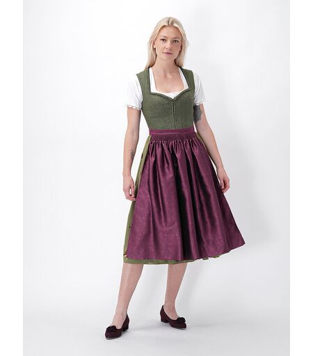 .Das Luisa Dirndl von Lena Hoschek Tradition vereint Eleganz und Tradition in einem bezaubernden Ensemble. Das Korsagenoberteil mit Herzausschnitt strahlt Romantik aus und wird durch zarte Rüschen am Ausschnitt veredelt. Ein Hakenverschluss sorgt für eine sichere Passform und betont die weibliche Silhouette. Der Rock begeistert mit feiner Motivstickerei, die dem Dirndl eine individuelle Note verleiht. Die gemusterte Seidenschürze setzt einen stilvollen Akzent und rundet das Gesamtbild harmonisch ab. Damen Dirndl von Lena Hoschek Tradition Korsagenoberteil mit Herzausschnitt Rüschen am Ausschnitt Hakenverschluss Motivstickerei am Rock Gemusterte Seidenschürze Farbbezeichnung: One Color Länge:ca:110cm. Material: Oberstoff 1: 100% Leinen Oberstoff 2: 55% Leinen, 45% Baumwolle Schürze: 100% Seide Futter: 100% Baumwolle ...