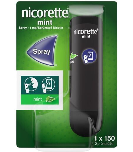Mit nicorette® endlich aufhören zu rauchen nicorette® mint Spray ist ein Nikotinspray zur Raucherentwöhnung, das Dich sowohl beim sofortigen Rauchstopp als auch bei Reduktion des Zigarettenkonsums mit dem Endziel Rauchfreiheit unterstützen kann. In nur 30 Sekunden lindert es mit 2 Sprühstößen Rauchverlangen und andere Entzugserscheinungen, die beim Aufhören mit dem Rauchen auftreten können, wie z. B. erhöhte Reizbarkeit und gesteigerter Appetit. Damit wirkt es schneller als andere Nikotinersatzprodukte von nicorette® und kann so insbesondere in kritischen Momenten helfen, nicht zu der Zigarette zu greifen. So geht's: Nikotinersatztherapie mit nicorette® Spray 1-2 Sprühstöße des nicorette® Sprays ersetzen eine Zigarette. Das Nikotin gelangt durch das Sprühen des Sprays in den Mund schnell über die Mundschleimhaut in die Blutbahn. Dadurch steigt der Nikotinspiegel im Blut und das Rauchverlangen wird gelindert. Bei der Raucherentwöhnung mit sofortigem Rauchstopp wird empfohlen, nicorette® Spray über 12 Wochen anzuwenden und über diesen Zeitraum die Sprühstöße und damit die Nikotinzufuhr zu reduzieren. Jetzt neu: Verbindung mit der Tracking-App nicorette® Nichtraucher“ Dank integriertem NFC-Chip kann mit der App jede Nutzung des nicorette® Sprays ganz einfach getrackt werden. Dazu das nicorette® Spray nach der Nutzung an die App halten und so einen Überblick über die Nutzung des nicorette® Sprays erhalten. Erstelle Dir Deinen Rauchstopp-Plan: durch das Setzen deiner eigenen Ziele kannst Du deinen Fortschritt zu jeder Zeit tracken. Der integrierte Rechner zeigt Dir zudem, auf wie viele Zigaretten Du bisher verzichtet hast und wie viel Geld Du dadurch sparen konntest. Außerdem können zahlreiche Tipps zusätzlich helfen, motiviert zu bleiben. Anwendung Entriegeln der Kindersicherung Nutze Deinen Daumen, um die Taste nach unten zu schieben, bis sie sich leicht nach innen drücken lässt. Übe dabei nicht zu viel Druck aus. Schiebe die Taste nach oben, während Du sie gedrückt hältst, bis der Sprühkopf herausgeschoben ist. Das Spray ist entriegelt. Richtig sprühen mit dem Spray Halte das Spray mit der Öffnung ganz nah an Deinen geöffneten Mund. Sprühe in die Mundhöhle oder in die seitliche Wangentasche, ohne dabei zu schlucken, einzuatmen, die Lippen zu benetzen, zu essen oder zu trinken. Drücke den Sprühkopf einmal fest von oben herunter. Wiederhole diesen Vorgang ein zweites Mal, wenn Dein Rauchverlangen nicht innerhalb weniger Minuten abnimmt. Verriegele das Spray danach wieder Dosierung 1-2 Sprühstöße ersetzen eine Zigarette. 1 Sprühstoß enthält 1 mg Nikotin. Wende maximal folgende Anzahl an Sprühstößen an: 2 Sprühstöße nacheinander 4 Sprühstöße pro Stunde 64 Sprühstöße pro Tag Zur Unterstützung bei der Raucherentwöhnung beim Versuch das Rauchen sofort aufzugeben oder zur Verringerung des Zigarettenkonsums (Rauchreduktion), um auf diesem Weg den Rauchausstieg zu erreichen. Zusammensetzung Wirkstoff: Nicotin Die sonstigen Bestandteile sind:... ...