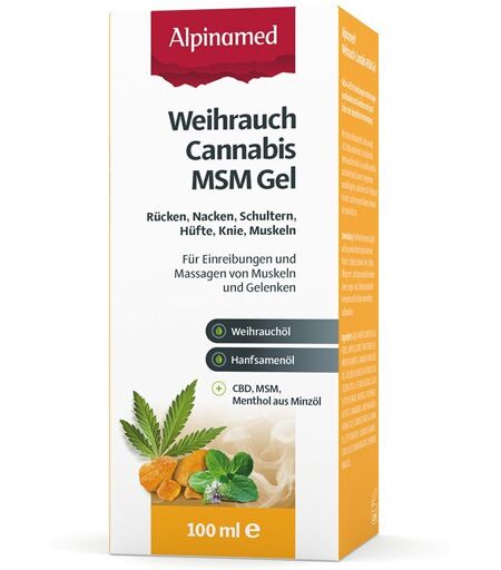 Alpinamed® Weihrauch Cannabis MSM Gel Aktiv-Gel für Einreibungen und Massagen von Muskeln und Gelenken. Anwendung: Bei Bedarf mehrmals täglich auf die betroffenen Körperstellen wie Rücken, Schultern, Nacken, Knie, Hüfte, Ellenbogen etc. auftragen und leicht einmassieren. Inhaltsstoffe: aqua (water), dimethyl sulfone (msm), caprylic/capric triglyceride, isopropyl palmitate, cannabis sativa seed oil, boswellia carterii oil, glycerin, butylene glycol, cetearyl alcohol, sucrose polystearate, pinene, menthol, tocopheryl acetate, cannabidiol (cbd), xanthan gum, levulinic acid, sodium stearoyl glutamate, cetyl palmitate, sodium levulinate, citric acid, sodium benzoate, limonene, linalool, alpha-terpinene, terpinolene, beta-caryophyllene, terpineol Nettofüllmenge: 100 ml Hersteller: Gebro Pharma GmbH Fieberbrunn Österreich ...