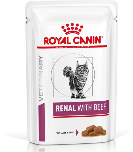 Allgemeine Hinweise: Es wird empfohlen, vor der Verwendung den Rat eines Tierarztes einzuholen. Während der Fütterung eines Diätfutters, sollten Sie Ihren Haustierarzt regelmäßig zu Kontrolluntersuchungen aufsuchen. Sollte sich der Gesundheitszustand Ihrer Katze verschlechtern, müssen Sie umgehend tierärztlichen Rat einholen. Aromatisch, lecker und abwechslungsreich: Royal Canin Veterinary Feline Renal Nassfutter gibt es in mehreren schmackhaften Sorten, so dass selbst Katzen mit vermindertem Appetit auf ihre Kosten kommen. Das diätetische Nassfutter wurde speziell zur Unterstützung der Nierenfunktion bei Katzen mit chronischer Niereninsuffizienz entwickelt und eignet sich für die tägliche Fütterung. Das Diätfutter zeichnet sich durch eine abgestimmte Rezeptur mit einem moderaten Gehalt an hochwertigen Proteinen und einem reduzierten Phosphorgehalt aus. Das soll dazu beitragen, die Nieren zu entlasten. Um das Risiko der Oxalsteinbildung zu senken, ist auch der Gehalt an Kalzium und Vitamin D verringert. Gleichzeitig besitzt das Katzenfutter harnalkalisierende Eigenschaften, um einen idealen Urin pH-Wert zu fördern. Royal Canin Veterinary Feline Renal weist eine hohe Energiedichte auf, um eine ausreichende Energiezufuhr selbst bei geringeren Futtermengen zu ermöglichen. Royal Canin Veterinary Feline Renal Nassfutter im Überblick: Diät-Alleinfuttermittel für Katzen zur Unterstützung der Nierenfunktion bei chronischer Niereninsuffizienz und zur Verringerung der Oxalsteinbildung Entlastung der Nieren: niedriger Phosphorgehalt, moderater Gehalt an hochwertigem Protein zur Unterstützung der Nierenfunktion Verringerung der Oxalatsteinbildung: niedriger Gehalt an Kalzium und Vitamin D, harnalkalisierend Hohe Energiedichte: ermöglicht eine Reduzierung der Futtermenge, gleicht die Energiezufuhr bei vermindertem Appetit aus Appetitanregende Rezeptur: mit feinen Stückchen in Soße, wird auch von vielen Katzen mit verringertem Appetit gut angenommen Köstliche Auswahl: verschiedene leckere Sorten erhältlich Auch als Trockenfutter erhältlich: kann gut kombiniert werden In Pouches: praktische Portionsbeutel mit je 85 g Inhalt ...