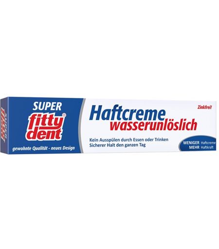 Anwendungsgebiet von Fittydent super HaftcremeFittydent super Haftcreme – Klebt anstatt nur zu haften – einen ganzen Tag lang! Der langanhaltende Klebe-Effekt der wasserunlöslichen fittydent super Haftcreme fixiert nicht nur perfekt die Oberkieferprothese, sondern eignet sich insbesondere auch für den speichelreicheren „Problembereich“ Unterkiefer. Das fittydent „Klebe-Prinzip“: Der fittydent Klebe-Effekt basiert auf dem „Kaugummi-Prinzip“. Damit ein Kaugummi an einer Fläche klebt, muss diese trocken sein. fittydent besteht aus zwei Komponenten. Die eine nimmt zunächst die Feuchtigkeit der Mundschleimhaut auf, sorgt also für eine trockene Oberfläche, die andere sorgt für den langanhaltenden „Klebe-Effekt“. Ein Kaugummi ist wasserunlöslich. Solange die Feuchtigkeit von der Klebemasse aufgenommen werden kann, bleibt die Prothese fest kleben. Je nach verwendeter Menge hält fittydent einen ganzen Tag, bevor der Speichel nicht mehr aufgesaugt wird und die Prothese problemlos wieder gelöst werden kann. Sauberkeit und Hygiene: Essensrückstände auf der Prothese lassen sich mit einer handelsüblichen Bürste leicht entfernen. Für die Entfernung der wasserunlöslichen Rückstände wird eine Reinigungstablette mit einem ph-Wert 9 benötigt - fittydent super Reinigungstabletten.GegenanzeigenBei bekannter Überempfindlichkeit gegen einen der Inhaltsstoffe sollte dieses Produkt nicht angewendet werden.DosierungAnwendungsempfehlung von Fittydent super Haftcreme: Dosierung: Jede Prothese und jeder Kiefer ist anders. Um die benötigte Menge fittydent Haftcreme zu bestimmen, müssen Ihre Kunden zunächst etwas „experimentieren“. Sinnvoll ist es, mit wenig Haftcreme zu beginnen und die Menge solange zu steigern, bis die Dauer des Klebe-Effekts den individuellen Bedürfnissen entspricht. Zahnprothese reinigen und vollständig trocknen. Nur wenn ...