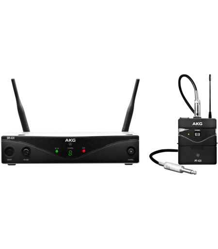 Das WMS420 Instrumental Set ist ein leistungsfähiges und flexibel nutzbares Funksystem für zahlreiche Anwendungen. Das Instrumental Set beinhaltet den Empfänger SR420, einen Taschensender PT420 sowie ein Klinken-Anschlusskabel. Die kinderleichte Bedienung der WMS420 ermöglicht eine schnelle Konfiguration und Inbetriebnahme des Funksystems.Über das Klinken-Anschlusskabel werden Instrumente wie Gitarre, Bass oder Keyboard an den Taschensender angeschlossen. Für den Mini-XLR-Anschluss am Taschensender ist eine große Auswahl an AKG Mikrofonen erhältlich. Je nach Anforderung kann das Set so mit Nackenbügel- und Lavaliermikrofonen oder Schwanenhälsen und Grenzflächenaus dem Installationsbereich kombiniert werden.Der Diversity Empfänger SR420 garantiert einen sicheren Empfang des Audio-Signals. Zwei abnehmbare Antennen auf der Rückseite des Empfängers sorgen für maximale Flexibilität und ermöglichen die Verwendung von optionalem Antennenzubehör. Die Empfangsqualität der beiden Antennen wird mittels ausgereifter Algorithmen ständig verglichen und nur das empfangsstärkste Funksignal verwendet. Das garantiert optimale HF-Stabilität ohne störende Aussetzer.Der Taschensender PT420 ist besonders klein und leicht. Mit nur einer AA-Batterie oder NiMh-Akku funktioniert die Funkübertragung bis zu 8 Stunden. Der Eingangspegel des angeschlossenen Mikrofons, lässt sich direkt am Taschensender einstellen. Integrierte Ladekontakte ermöglichen das direkte Aufladen des Senders in der optionalen Ladestation CU400, in der sich bis zu zwei Sender bequem aufladen und sicher aufbewahren lassen.Sowohl der Empfänger SR420 als auch der Taschensender PT420 arbeiten in einer Schaltbandbreite von bis zu 30 MHz. Bis zu 8 Kanäle lassen sich simultan im UHF-Bereich betreiben. Das System ist auch in anmelde- und gebührenfreien Frequenzbereichen erhältlich.Lieferumfang: 1x Diversity-Empfänger SR420, 1x Taschensender PT420, 2x BNC UHF Antennen, 1x Netzgerät, 1x Batterie LR6 (AA)Erhältliche Frequenzen: A, B1, B2, D (ISM), M (Mittenlücke)Features: Set aus Taschensender, Empfänger und Kopfbügelmikrofon, 8 Stunden Laufzeit mit nur einer AA-Batterie oder NiMh-Akku, Abnehmbare UHF-Antennen mit BNC-Anschluss, Low-Battery Anzeige und Ladekontakte am Sender, Taschensender PT420: Sehr kleiner und leichter Taschensender, Regler für Eingangsempfindlichkeit und On/Off/Mute-Schalter, Ladekontakte für bequemes Aufladen in Ladestation, Bis zu 50 mW Sendeleistung für große Reichweite, Inklusive Gürtelclip und Batterie, Empfänger SR420: Diversity-Empfänger für besser Empfangsqualität, Zwei abnehmbare Antennen mit BNC-Anschluss, XLR- und Klinkenausgang, Regler für Lautstärke und Squelch-Level, Inklusive Netzteil ...