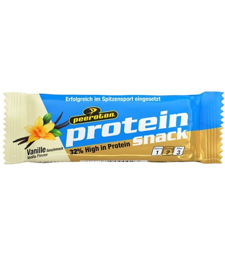 Bitte achten Sie auf eine ausgewogene und abwechslungsreiche Ernährung und eine gesunde Lebensweise.PROTEINSNACK Riegel VanilleDer Peeroton PROTEINSNACK ist ein High Protein Riegel, er ist der Klassiker unter den Eiweißsnacks. Der handliche PROTEINSNACK passt in jede Tasche und versorgtSie mit zahlreichen Vitaminen und natürlich hochwertigem Protein. Der beliebteste Proteinsnack in der Apotheke. Ideal für zu Hause, im Büro und Unterwegs, die Alternative zu Protein Shakes.Zutaten: Milcheiweiß, Glukosesirup, Vollmilchschokoladeüberzug (Zucker, Kakaobutter, Emulgator Sojalecithine, Aroma), Fruktosesirup, Kollagenhydrolysat, Dextrose, pflanzliches Fett, Aroma, L-Ascorbinsäure, Natrium, Eiklarpulver, DL-alpha-Tocopherol, Calcium-D- Pantothenat, Pyridoxinhydrochlorid, Riboflavin (Vitamin B2), Thiamin (Vitamin B1) Nährwertangaben: Proteinsnack Vanille per 100 g Per 35 g % NRV per 35g Energie 1.620kJ / 384 kcal 567 kJ / 134 kcal Fett 10 g 3,5 g davon gesättigte Fettsäuren 5,8 g 2 g Kohlenhydrate 43 g 15 g davon Zucker 28 g 9,8 g Eiweiß 32 g 11 g Salz 0,5 g 0,2 g Vitamin E 34 mg 12 mg 100% Vitamin C 229 mg 80 mg 100% Thiamin 3,1 mg 1,1 mg 100% Riboflavin 4 mg 1,4 mg 100% Vitamin B6 4 mg 1,4 mg 100% Pantothensäure 17 mg 6 mg 100% Bitte beachten: Rechtsgültigkeit hat ausschließlich das Zutaten- und Nährwertverzeichnis auf der jeweiligen im Handel befindlichen Produktverpackung.Verzehrempfehlung: Nach dem Krafttraining je nach Dauer und Intensität 1 bis 2 Riegel essen, nach einer intensiven Ausdauerbelastung einen Riegel essen. Optimal auch als Eiweißsnack für Zwischendurch! Immer ausreichend Flüssigkeit dazu trinken (200 bis 400 ml). Ideal für zu Hause, im Büro und Unterwegs, die Alternative zu Protein ShakesHinweis:Die angegebene empfohlene tägliche Verzehrmenge darf nicht überschritten werden.Aufbewahrung: Kühl (6-25 °C) und lichtgeschützt lagern. Außerhalb der Reichweite von Kindern aufbewahren.Nettofüllmenge:Kartoninhalt 24 Riegel á 35g sortenreinHerstellerdaten: PEEROTON GmbH Millennium Tower Handelskai 94-96A-1200 Wien ...