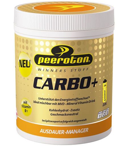 Nahrungsergänzungsmittel sind kein Ersatz für eine ausgewogene und abwechslungsreiche Ernährung und eine gesunde Lebensweise. CARBO PLUS KOHLENHYDRAT – Zusatz GetränkepulverCARBOLOADING individuell, je nach Anforderung, mit MINERAL VITAMIN DRINK zu dosieren Schnelle langanhaltende Energieversorgung, erhöht das Durchhaltevermögen Versorgt den Organismus mit komplexen leicht verdaulichen Kohlenhydraten Optimales Kohlenhydratpräparat für den Ausdauersport Rasche schonende Aufnahme aufgrund des niedrigen glykamischen Indexes Vor- oder während und nach erhöhter Belastung Laktose und GlutenfreiPeeroton KOHLENHYDRAT – Zusatz ist besonders leicht verdaulich und dient zur Auffüllung der Kohlenhydrat– bzw. Glykogendepots. So bietet es eine optimale Voraussetzung zur Bewältigung körperlicher Belastungen. Mit einem glykämischen Index von 35 kann es als optimales Kohlenhydratpräparat für den Ausdauersport betrachtet werden.Zutaten: Maltodextrin (enthält SO2), Inosit, pflanzliche Öle (Octacosanol), Süßungsmittel Natriumsaccharin, Süßungsmittel Natriumcyclamat, Süßstoff Acesulfam, Thiaminhydrochlorid (Vitamin B1)Nährwerte: Nährwertangaben per 100 g per 30 g (Dosierempfehlung) Energie 1611 kJ / 379 kcal 483 kJ / 114 kcal Fett < 0,1 g 0,02 g Kohlenhydrate 94,6 g 28,4 g Eiweiß < 0,1 g < 0,1 g Natrium 10,6 mg 3,18 mg BE 7,9 2,4 wertbestimmende Inhaltsstoffe Thiamin (Vitamin B1) 2,83 mg 0,85 mg ( 77 %*) Inosit 196 mg 58,8 mg * % der empfohlenen Tagesdosis gemäß NRVVerzehrsempfehlung:30g (= 2 EL) mit 500ml Wasser mischen und vor bzw. während dem Training/Wettkampf trinken. Ideal in Kombination mit Peeroton Mineral Vitamin Getränkepulver zur gesamten Kohlenhydrat–, Mineralstoff– und Vitaminversorgung.Dieses Produkt zeichnet sich durch eine hohe Magen– /Darmverträglichkeit während dem Training/Wettkampf oder auch bei Krankenhausaufenthalten aus.Hinweis:Die angegebene empfohlene Tagesmenge darf nicht überschritten werden.Aufbewahrung:Kühl (6-25 °C) und lichtgeschützt lagern. Außerhalb der Reichweite von kleinen Kindern aufbewahren.Nettofüllmenge:600 gHersteller: Peeroton G.m.b.H. Liechtensteinstraße 135 1090 Wien ...