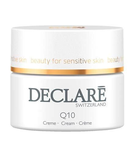 Die hautstraffende Creme mit Q10 - einem essentiellen Bestandteil der körpereigenen Zellen - reduziert die schädigende Wirkung Freier Radikale und beugt vorzeitiger Hautalterung vor. Pentacare HP, Ceramide und Vitamin B5 glätten und straffen die Haut, regulieren die Lipidbarriere und erhöhen den Feuchtigkeitsgehalt der Haut. Ein spezieller Relaxing Komplex wirkt beruhigend und ausgleichend. Bereits nach kurzer Zeit verbessert sich das Hautbild und Ihre Haut erhält ein jugendliches und strahlendes Aussehen. Der Wirkstoff Q10: Das Co-Enzym Q10, auch bekannt als Ubichinone, wurde in den 90er Jahren von Juvena entdeckt und erstmalig in eine Anti-Aging-Pflege integriert. Seit dieser Zeit hat es sich in der Kosmetik als effektiver Anti-Aging-Wirkstoff etabliert. Q-10 ist eine körpereigene Substanz, die zum Teil über die Nahrung aufgenommen, aber auch vom Körper selbst produziert wird. In jeder menschlichen Zelle wird die Energie aus der Nahrung in körpereigene Energie (ATP) umgewandelt. Q-10 ist als Co-Enzym an diesem Umwandlungsprozess direkt beteiligt. Kosmetisch betrachtet unterstützt es so die Hautregeneration, repariert Fehlfunktionen der Zellen, stellt den Abbau freier Radikaler sicher und beeinflusst positiv die Zellfunktionen bei der Wundheilung. Anwendung: Nach der Reinigung zart auf Gesicht und Hals auftragen und sanft einmassieren. Declaré - die Kosmetik für empfindliche Haut Empfindliche Haut ist von Natur aus dünner, zarter und feiner als "normale" Haut. Ihre Reaktion auf Umwelteinflüsse oder auch innere Einflüsse wie Stress ist schneller und intensiver. Juckreiz, eine veränderte Hautoberfläche bis hin zu vorzeitiger Hautalterung können die Folge sein. Die wissenschaftlichen Innovationen von Declaré im Bereich der kosmetischen Pflege für empfindliche Haut sind international anerkannt. src complex™ Der Declaré src-complex™ gleicht anhand pflanzlicher Wirkstoffe Defizite empfindlicher Haut aus und wirkt gleichzeitig auf mehreren Ebenen. So verbessert sich die Hautbarriere, ihre natürliche Widerstandskraft wird gestärkt. Durch die Reduktion von Irritationen fühlt sich die Haut spürbar wohler. Das Ergebnis: ein sichtbar gleich mäßiger, strahlender Teint. Und last but not least: Der intensive Zellschutz beugt Zellschäden vor und wirkt so, Tag für Tag, unermüdlich, gegen frühzeitige Hautalterung. ...