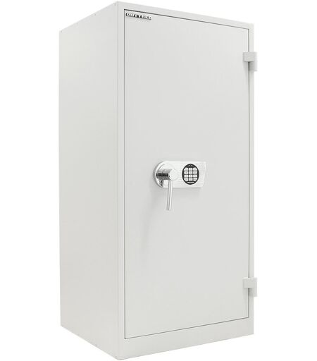kompakter Doppelwandschrank mit einer gesamten Korpusstärke von 60 mm verfügt über ein 3-seitigen Verriegelungsmechanismus Tresorschloss der Klasse A nach EN 1300 mit Schlüssel oder elektronischer Verriegelung die Außenscharniere ermöglichen einen Öffnungswinkel von bis zu 180° Innenkasten und Registratur sind nicht enthalten. Bestellung gegen Aufpreis möglich. Eigenschaften: Außenmaße H x B x T (mm): 1220 x 600 x 520, Innenmaße H x B x T (mm): 1082 x 506 x 420, Anzahl Regalböden: 2, Volumen (l): 223, Farbe: grau, Gewicht (kg): 72, Schloss: elektronisch - Codeschloss, Sicherheitsstufe: -, Anzahl Aktenordner: 18, Feuerbeständigkeit: -, Außenbreite (mm): 600, Außenhöhe (mm): 1220, Innenbreite (mm): 506, Innenhöhe (mm): 1082, Außentiefe (mm): 520, Innentiefe (mm): 420 ...