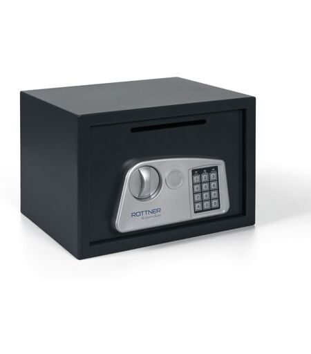 Tresor zur Aufbewahrung von Brieftaschen, persönlichen Dokumenten, kleinen Wertgegenständen oder Schmuck Einwandiger Tresor aus hochwertigem Stahl Klassisches Tresorschloss mit zwei Schlüsseln Einwurf in der Front (Abmessungen 150 x 9 mm) 1 mm dickes Gehäuse Türendicke 3 mm Maximaler Türöffnungswinkel 90° Türhöhe 208 mm, Türbreite 307 mm Nicht verstellbarer Einlegeboden innen (herausnehmbar) 2 Bohrungen zur Verankerung auf der Unterseite (Bohrungsdurchmesser 6 mm) 2 Bohrungen zur Verankerung auf der Rückseite (Bohrungsdurchmesser 6 mm) inklusive Befestigungsmaterial Eigenschaften: Außenmaße H x B x T (mm): 250 x 350 x 280, Innenmaße H x B x T (mm): 245 x 345 x 214, Anzahl Regalböden: 1, Volumen (l): 18,09, Farbe: Anthrazit, Gewicht (kg): 8,5, Schloss: elektronisch - Codeschloss, Sicherheitsstufe: -, Schließfach innen: -, Feuerbeständigkeit: -, Außenbreite (mm): 350, Außenhöhe (mm): 250, Innenbreite (mm): 345, Innenhöhe (mm): 245, Außentiefe (mm): 280, Innentiefe (mm): 214 ...