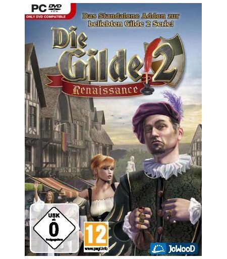 AudienceRating : Freigegeben ohne Altersbeschränkung, Brand : JoWood, Binding : Computerspiel, Label : EuroVideo Bildprogramm GmbH, Publisher : EuroVideo Bildprogramm GmbH, NumberOfDiscs : 1, Format : DVD-ROM, Feature : JoWood Productions Software AG DIE GILDE 2 - RENAISSANCE, VÖ : 26.07.2010/ System : PC/ Genre : Simulation/ deutsche Version/ USK : ohne Altersbeschränkung/ Add-On, medium : Computerspiel, 0 : PC, 0 : Windows 7, 1 : Windows Vista, 2 : Windows XP, releaseDate : 2010-07-27 ...