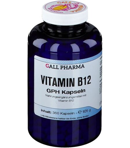 Nahrungsergänzungsmittel sind kein Ersatz für eine ausgewogene und abwechslungsreiche Ernährung und eine gesunde Lebensweise. GALL PHARMA Vitamin B12 3,0 µg GPH KapselnVitamin B12 GPH Kapseln enthalten 3,0 ?g Cyanocobalamin in einer Hartgelatinekapsel. Vitamin B12 trägt zu einem normalen Energiestoffwechsel bei zu einer normalen Funktion des Nervensystems bei zu einem normalen Homocystein- Stoffwechsel bei zur normalen psychischen Funktion bei zu einer normalen Bildung roter Blutkörperchen bei zu einer normalen Funktion des Immunsystems bei zur Verringerung von Müdigkeit und Ermüdung bei und hat eine Funktion bei der Zellteilung. RohstoffbeschreibungVitamin B12 Kapseln sind ein hochwertiges Produkt. Die in den Hartgelatinekapseln verwendete Gelatine ist BSE/TSE-geprüfte Pharmagelatine.Zutaten: Füllstoff: Mannit; Cyanocobalamin ( ...
