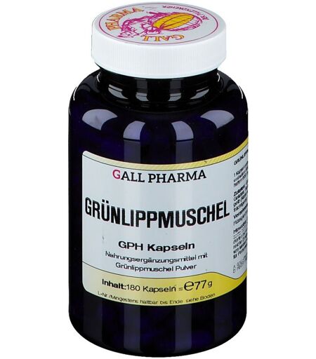Nahrungsergänzungsmittel sind kein Ersatz für eine ausgewogene und abwechslungsreiche Ernährung und eine gesunde Lebensweise.Grünlippmuschel: Die Grünlippmuschel ist in den Gewässern um Neuseeland zu finden und zeichnet sich durch ihren hohen Gehalt an Aminozuckern aus. Ihr positiver Effekt bei der Behandlung von Gelenkbeschwerden sowie beim Aufbau körpereigener Gewebe ist schon lange bekannt. Das Grünlippmuschelpulver hat nachweislich entzündungshemmende, schmerzlindernde, gelenkschmierende und knorpelschützende Eigenschaften. Grünlippmuschelpulver stammt von der Muschel Perna canaliculus. Zur Herstellung des Muschelpulvers werden die Muscheln von der Schale befreit und gereinigt. Anschließend wird ihnen in einem Trocknungsprozess auf besonders schonende Weise das Wasser entzogen, so dass die biologische Aktivität erhalten bleibt. Das Pulver zeichnet sich deshalb durch einen hohen Gehalt an Aminozuckern aus.Funktionen: Zur unterstützenden Behandlung bei Arthrose und Gelenkserkrankungen Wichtig für den Erhalt und die Regeneration des Knorpelgewebes Verbessern die Funktionalität der GelenkeZutaten:Grünlippmuschel PulverKapselhülle: Gelatine; Farbstoffe in der Kapselhülle: , Chinolingelb (Kann Aktivität und Aufmerksamkeit von Kindern beeinträchtigen!), Indigotin I, EisenoxidNährwerte: 1 Kapsel enthält 333 mg Grünlippmuschel Pulver. 2 Kapseln enthalten 666 mg Grünlippmuschel Pulver. 3 Kapseln enthalten 999 mg Grünlippmuschel Pulver.Verzehrempfehlung:Erwachsene: 3 x 1 Kapsel täglich mit Flüssigkeit einnehmen.Hinweise:Die angegebene empfohlene Verzehrempfehlung darf nicht überschritten werden.Aufbewahrungshinweis:Außerhalb der Reichweite von kleinen Kindern bei Raumtemperatur trocken lagern.Ungeeignet für Personen mit Weichtierallergie.Nettofüllmenge:180 Kaspeln = 77 gHersteller:Gall-Pharma GmbHGrünhüblgasse 258750 JudenburgÖsterreich ...