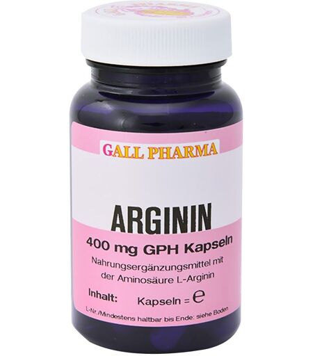 Nahrungsergänzungsmittel sind kein Ersatz für eine ausgewogene und abwechslungsreiche Ernährung und eine gesunde Lebensweise.GALL PHARMA Arginin 400mg Gph KapselnL-Arginin gehört zu den semi-essentiellen Aminosäuren und kommt vor allem in Nahrungsmitteln mit hohem Eiweißanteil vor. Semi-essentielle Aminosäuren sind Aminosäuren, bei denen die körpereigene Herstellung nicht immer ausreicht.Vor allem in Belastungssituationen, wie zum Beispiel beim Training, Wachstumsphasen, Verletzungen oder unter Stress, sollte L-Arginin dem Organismus gezielt mit der Nahrung oder mittels Nahrungsergänzung zugeführt werden.Die Aminosäure ist für den Muskelstoffwechsel wichtig und besitzt in diesem Zusammenhang eine Schlüsselfunktion beim Ablagern, sowie beim Transport und Ausscheiden von Stickstoff. Auch beim Leberstoffwechsel spielt L-Arginin eine wichtige Rolle, da es die Entgiftung des Körpers unterstützt.Arginin 400 mg GPH Kapseln enthalten L-Arginin nicht tierischen Ursprungs, welches durch Fermentation hergestellt wird. Unterstützen die Behandlung von Erektionsstörungen und steigern die Potenz Entgiften den Körper Optimieren die Durchblutung sowie die Sauerstoffversorgung Optimieren die Immunfunktion und WundheilungZutaten:L-Arginin; Trennmittel: Magnesiumsalze der SpeisefettsäurenKapselhülle: Gelatine; Farbstoffe in der Kapselhülle: , Eisenoxid, Ponceau 4 R, Chinolingelb, Patentblau V (Können Aktivität und Aufmerksamkeit bei Kindern beeinträchtigen!)Nährwert:5 Kapseln enthalten 2000 mg L-Arginin.Verzehrempfehlung:Erwachsene: 5 Kapseln täglich mit Flüssigkeit einnehmen. Die Einnahme erfolgt üblicherweise am späten Nachmittag. Es kann zusätzlich oder abwechselnd mit L-Ornithin eingenommen werden.Hinweise:Die angegebene empfohlene Verzehrempfehlung darf nicht überschritten werden.Aufbewahrung:Außerhalb der Reichweite von kleinen Kindern, bei Raumtemperatur und trocken aufbewahren.Nettofüllmenge: 120 Kapseln = 79 gHerstellerdaten:HECHT-Pharma GmbHZevener Straße 927432 BremervördeDeutschland ...