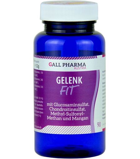 Nahrungsergänzungsmittel sind kein Ersatz für eine ausgewogene und abwechslungsreiche Ernährung und eine gesunde Lebensweise. GALL PHARMA Gelenk-Fit GPH Kapseln Gelenk-Fit GPH Kapseln enthalten die körpereigenen Baustoffe D-Glucosaminsulfat, Chondroitinsulfat, Methylsulfonylmethan (MSM) und das Spurenelement Mangan. Als Bestandteil von Proteoglykan ist der Aminozucker Glucosamin Baustoff der Knorpelsubstanz, Sehnen und Bänder. Als Hauptkomponente der Knorpelmasse gibt Chondroitin Struktur und wirkt aufgrund der Fähigkeit Wasser zu speichern als Polster zwischen den Gelenken. MSM ist eine organische Schwefelverbindung. Das Spurenelement ist auch bei der Biosynthese von Proteoglykanen beteiligt.Gelenk-Fit GPH Kapseln enthalten 160 mg Glucosaminsulfat, 100 mg Chondroitinsulfat, 85 mg Methylsulfonylmethan und 0,83 mg Mangan als Mangangluconat in einer Hartgelatinekapsel. Dies ist eine sinnvolle Kombination von natürlichen körpereigenen Stoffen, welche als Kombination synergistische Effekte aufweisen. Mangan erhöht die endogene Chondroitinsynthese.Rohstoffbeschreibung:Glucosaminsulfat 2KCl wird aus Krabbenschalen gewonnen und hat Pharmaqualität. Chondroitinsulfat ist tierischen Ursprungs. Die Unbedenklichkeit wird durch BSE/TSE-Zertifikate bestätigt. Methylsulfonylmethan ist synthethisch, von hoher Reinheit und Qualität. Das Spurenelement Mangan wird in Form von Mangangluconat eingesetzt. Dieses entspricht dem amerikanischen Arzneibuch. Die in den Hartgelatinekapseln verwendete Gelatine ist BSE/TSE-geprüfte Pharmagelatine. Bei der Produktion werden keine Hilfsstoffe wie Füll-, Farb- oder Konservierungsstoffe eingesetzt.Zutaten: Glucosaminsulfat 2 KCl (32 %); Füllstoff: Mannit; Chondroitinsulfat Natrium (16 %), Methyl-Sulfonyl-Methan (12 %), Mangangluconat (1 %); Kapselhülle: Gelatine; Farbstoffe in der Kapselhülle: ,Chinolingelb (Kann Aktivität und Aufmerksamkeit bei Kindern beeinträchtigen!)Verzehrempfehlung:3 x 2 Kapseln täglich mit Flüssigkeit vor den Mahlzeiten einnehmen.Bei Besserung der Beschwerden kann die Einnahme auf 3 x 1 Kapsel reduziert werden. Eine kurmäßige Anwendung über zumindest 3 Monate ist empfehlenswert.Hinweise: lactosefrei, hefefrei, glutenfrei.Nicht während der Schwangerschaft oder in der Stillzeit einnehmen. Empfindliche Personen können mit Magen- und Darmbeschwerden reagieren, in diesem Fall ist die Einnahme zum Essen zu empfehlen.Aufbewahrung:Außerhalb der Reichweite von Kindern bei Raumtemperatur trocken lagern.Nettofüllmenge: 90 KapselnHerstellerdaten: Gall-Pharma GmbH Grünhüblgasse 25 8750 Judenburg ...