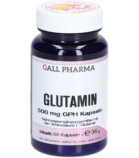Nahrungsergänzungsmittel sind kein Ersatz für eine ausgewogene und abwechslungsreiche Ernährung und eine gesunde Lebensweise.GALL PHARMA Glutamin 500 mg GPH KapselnDie Glutamin 500 mg GPH Kapseln von Hecht Pharma enthalten 500 mg L-Glutamin pro Kapsel. L-Glutamin ist eine Aminosäure, die eine wichtige Rolle in verschiedenen Stoffwechselprozessen des Körpers spielt, insbesondere in Zeiten von körperlichem oder mentalem Stress. Die Kapseln bestehen aus einer Gelatinekapselhülle, die mit Farbstoffen wie und Eisenoxid angereichert ist. Diese Farbstoffe können die Aktivität und Aufmerksamkeit bei Kindern beeinflussen. Das Produkt ist gluten- und laktosefrei und kann somit auch bei entsprechenden Unverträglichkeiten verwendet werden. 500 mg L-Glutamin pro Kapsel Glutenfrei, laktosefrei Kapselhülle enthält Farbstoffe, die die Aktivität von Kindern beeinflussen könnenZutaten: L-Glutamin; Kapselhülle: Gelatine; Farbstoffe in der Kapselhülle: , Eisenoxid, Ponceau 4 R, Chinolingelb, Patentblau V. Nährwertangaben Inhaltsstoff Pro 100 g *NRV L-Glutamin 500 mg - Allergene: Glutenfrei, LaktosefreiVerzehrempfehlung: Erwachsene nehmen täglich 1 Kapsel mit ausreichend Flüssigkeit ein.Hinweis:Die angegebene empfohlene Verzehrempfehlung darf nicht überschritten werden. Nahrungsergänzungsmittel dürfen nicht als Ersatz für eine ausgewogene und abwechslungsreiche Ernährung verwendet werden.Aufbewahrung: Außerhalb der Reichweite von kleinen Kindern, bei Raumtemperatur und trocken lagern.Nettofüllmenge: 60 Kapseln = ℮ 36 gHerstellerdaten: HECHT Pharma GmbH Zevener Straße 9 27432 BremervördeDeutschland ...
