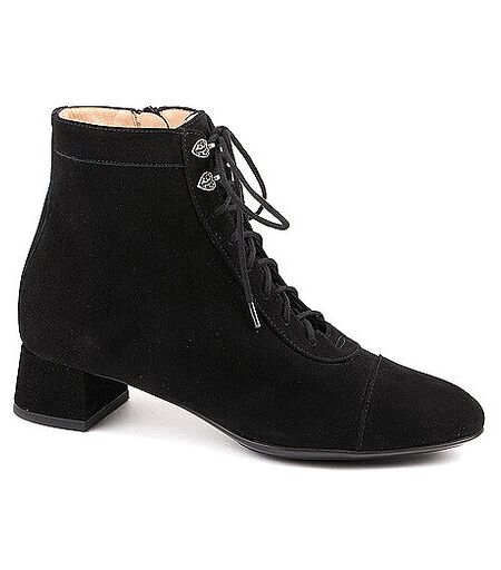 Damen Stiefeltte aus Ziegenleder Mittlere Schafthöhe Herzerl Ösen Hoher Tragekomfort Farbbezeichnung: Schwarz Material: Leder Futter: Kalbleder Sohle: Gummi ...