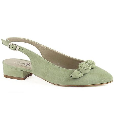 Damen Slingback Pumps aus Ziegenverlour-Leder Spitz zulaufend Tonale Blüten Details seitlich Absatz: 3cm Farbbezeichnung: aloe Material: Leder Futter: Leder Sohle: Synthetik ...