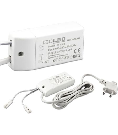 Isoled Led Trafo Miniamp 24v/dc, 0-30w, 200cm Kabel Mit Flachstecker, Sekundär 2 Female Buchsen