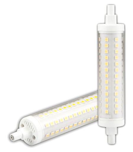 R7s LED Stab SLIM, 10W, L: 118mm, dimmbar, warmweiß: Länge: 118mm, Durchmesser: 23mm, Nettogewicht: 40g, Sockel: R7S, Nennspannung: 230V AC, Nennleistung: 10W, Bemessungsleistung: 10W, Farbtemperatur: 3000K, Abstrahlwinkel: 360°, Lichtstrom: 740lm, Lichtstärke: 59cd, Farbwiedergabe: > 80 CRI, Lebensdauer: 40000h, Schaltzyklen: 30000, Schutzart: IP20, Energieeffizienzklasse: A, Dimmbar: Ja, Inkl. Leuchtmittel: Nein ...