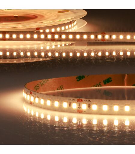 ISOLED LED CRI Food Flexband Bread, 24V, 14,4W, IP54 Nano beschichtet, 130 LED/m: LED CRI Food Flexband Bread, stufenlos dimmbar mit hohem Farbwiedergabeindex, Schutzart IP54, geeignet für Räume wo eine natürliche Beleuchtung gewünscht wird. Technische Daten: Länge: 5000 mm, Breite: 10 mm, Höhe: 1,70 mm, LED-Typ: 2835SMD, Nennspannung: 24 V, Nennleistung: 14,40 W, Bemessungsleistung: 14,4 W, Farbtemperatur: 2700K, Abstrahlwinkel: 120°, Lichtstrom: 1400 lm, Lichtstärke: 446 cd, Farbwiedergabe: 97 CRI, Lebensdauer: 53000 h, Schaltzyklen: 30000, Schutzart: IP54, Energieeffizienzklasse: F, Material: Kupfer/Silikon, Inkl. Leuchtmittel: Nein, Besonderheiten: Trennstelle: 50mm mit je 7 SMD Pitch (Chip Mitte-Mitte): 7,71mm 1 Rolle = 5m max. Flexbandlänge pro Einspeisung: 5m Längentoleranz + Wärmeausdehnung: 1% inkl. 3M 300LSE Klebeband Untergrund vor dem Ankleben reinigen und entfetten! Nicht wieder ablösen! erforderliche Kühlmasse: min. 75 gr/m Silikon-Verguß ...