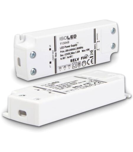 Isoled Led Trafo 12v/dc, 0-15w, Ultraflach, Selv