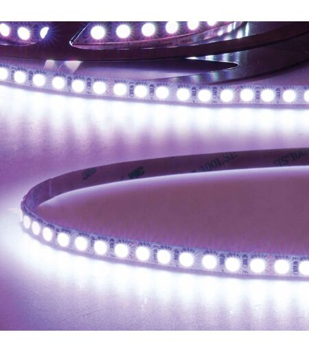 LED RGB Micro-Flexband, 24V, 12W, IP20: Länge: 5000mm, Breite: 8mm, Höhe: 2mm, Nettogewicht: 122g, LED-Typ: 600, Nennspannung: 24V DC, Bemessungsleistung: 12 W/m, Farbtemperatur: RGB, Abstrahlwinkel: 120°, Lichtstrom: RGBlm, Lebensdauer: 25000h, Schaltzyklen: 30000, Schutzart: IP20, Energieeffizienzklasse: A, Dimmbar: Jadimmbar per PWM (Pulsweiten modulierter Gleichspannungsversorgung) via vorgeschaltetem Controller oder dimmbaren Transformator, Material: Platine/weiss, Inkl. Leuchtmittel: Nein, Besonderheiten: Trennstelle: 50mm mit je 6 SMD Pitch (Chip Mitte-Mitte): 8,33mm Lötpad-Abstand (Mitte-Mitte): 4mm 1 Rolle = 5m max. Flexbandlänge pro Einspeisung: 5m Längentoleranz + Wärmeausdehnung: 1% inkl. 3M 300LSE Klebeband Untergrund vor dem Ankleben reinigen und entfetten! Nicht wieder ablösen! erforderliche Kühlmasse: min. 75 gr/m ...