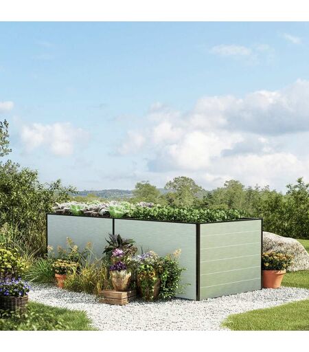 235 x 77 x 77 cm Hochbeet, Aluminium eloxiert: Ihrem Selbstversorger-Garten fehlt noch das gewisse Etwas, um Gurken, Kohlrabi und Radieschen optimale Wachstumsbedingungen zu bieten? Und auch Ihr Rücken schmerzt vom konventionellen Gärtnern? Wir haben die ideale Lösung! Mit diesem Kingsize-Hochbeet der Qualitätsmarke GFP in aluminium und rechteckiger Form müssen Sie sich nicht mehr krumm machen. Das zeitgemäße Hochbeet weist eine Beethöhe von 0,77 und ein Gewicht von 22 mm auf und gilt als äußerst langlebig und wartungsfrei. Die robuste Aluminium-Konstruktion (ca. 22 mm starke Aluminiumplanken) – "Designed in Austria" – garantiert einen stabilen Stand und das zweckmäßige Stecksystem erleichtert den Aufbau. Erhältlich ist das Hochbeet in vier unterschiedlichen Breiten: ca. 77 cm, 99 cm, 119 cm oder 150 cm. Profitieren Sie zudem von 15 Jahren Garantie auf den Aluminium-Rahmen. Ihr eigenes Obst und Gemüse im Garten anzubauen ist Ihr Hobby? Den Selbstversorger-Traum zu leben, erfüllt Sie mit Kreativität, die Sie gerne noch weiter ausleben möchten? Dann ist dieses 0,77x2,35m große Kingsize-Hochbeet der Qualitätsmarke GFP genau das richtige Modell für Sie, denn: Es ist modular erweiterbar. Möchten Sie in Zukunft gerne noch mehr Pflanzen anbauen, lässt sich das Hochbeet flexibel erweitern. Es stehen Ihnen vier Breiten-Varianten zur Erweiterung zur Auswahl: 77 cm, 99 cm, 119 cm und 150 cm. Apropos Größe: Mit einer Grundfläche von ca. 1.8095m² bietet dieses Kingsize-Hochbeet ausreichend Platz für den Anbau von Obst, Gemüse, Kräutern, Blumen, sowie Mischkulturen. Dank der Höhe von ca. [size_height] gewährleistet dieses moderne Modell in der Farbe aluminium zudem einen rückenschonenden Obst- und Gemüseanbau, ganz ohne Bücken. Gerade, wenn Sie eine längere Zeit am Stück mit der Bepflanzung oder Ernte beschäftigt sind, wird Ihnen diese Höhe zugutekommen. Da das Hochbeet in Schichten angelegt wird, profitieren Sie generell von vielen Möglichkeiten der Bepflanzung. Dank der Verrottung der einzelnen Schichten entsteht im Beet eine innere Wärme, welche das Pflanzenwachstum begünstigt. Der nährstoffreiche Boden führt demzufolge zu einem reichen und gesunden Pflanzenwachstum. Beim Wachstum spielt aber auch das Wetter, sowie die Qualität eine Rolle. Feuchtigkeit und Witterung wird nicht von allen Pflanzen vertragen – aus diesem Grund ist dieses Kingsize-Hochbeet aus Metall gefertigt und nicht aus z.B., Holz. Hochbeete aus Holz sind sehr pflege- und wartungsbedürftig, anfällig auf Schädlinge und witterungsempfindlich. Metall hingegen ist sowohl pflegearm bei hoher Lebensdauer, resistent gegen Schädlingsbefall als auch witterungsbeständig. Speziell besteht die Konstruktion von diesem Hochbeet aus korrosionsbeständigem Aluminium und ist äußerst stabil, wetterfest und ist somit für die ganzjährige Nutzung konzipiert. Es kommen ca. 22 mm starke Planken aus Aluminium zum Einsatz, die bauchigen Verformungen keine Chance bieten. Luftkammern sorgen zudem für eine isolierende... ...