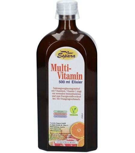 Rundum-Vitamin-VersorgungNahrungsergänzungsmittel mit Vitaminen für den gesamten Stoffwechsel und Organismus: Immunsystem, Antiox, Herz, Kreislauf, Haut, Schleimhäute, Nerven, Sehkraft, Psyche.So trägt z. B. Vitamin C zur normalen Immunfunktion und zum Energiestoffwechsel bei. Vitamin E trägt dazu bei, die Zellen vor oxidativem Stress zu schützen.Verschiedene B-Vitamine tragen zur normalen psychischen Funktion, einer normalen Herzfunktion, einer normalen Funktion des Nervensystems, zur Erhaltung normaler Haut, Schleimhäute und Haare, zu einem normalen Eisenstoffwechsel, zur Erhaltung normaler Sehkraft, zur Erhaltung normaler roter Blutkörperchen und zur Verringerung von Müdigkeit und Ermüdung bei.Vitamin D trägt zur Erhaltung einer normalen Muskelfunktion, zur Erhaltung normaler Knochen, zu einer normalen Aufnahme/Verwertung von Calcium und Phosphor, zu einem normalen Calciumspiegel im Blut, zur Erhaltung normaler Zähne bei und hat eine Funktion bei der Zellteilung.Wirkstoffe:20ml enthalten: 80,0 mg natürliches Vitamin C aus Acerola (100% NRV) 16,0 mg Niacin (Niacinamid) (100% NRV) 12,0 mg natürlichem Vitamin E (100% NRV) 6,0 mg Pantothensäure (Calciumpantoth.) (100% NRV) 1,4 mg Vitamin B2 (Riboflavin) (100% NRV) 1,4 mg Vit. B6 (Pyridoxolhydrochlorid) (100% NRV) 1,1 mg Vit. B1 (Thiaminhydrochlorid) (100% NRV) 200 µg Folsäure (100% NRV) 50 µg Biotin (100% NRV) 5 µg natürlichem Vitamin D3 (Cholecalciferol) (100% NRV) 2,5 µg Vitamin B12 (Cyanocobalamin) (100% NRV) ...