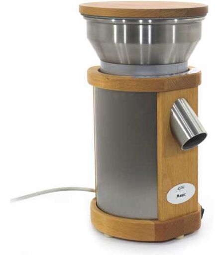 Komo Magic - Getreidemühle aus Buche massiv und Edelstahl - 250W. Mahlwerke aus Korund-Keramik, Maschinenkörper aus massivem Buchenholz und Edelstahl. Trichterfüllmenge 850 Gr, Mahlleistung 100g/min ca. Motor von 250 Watt. In Österreich hergestellt ...