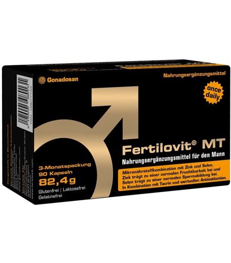 Anwendungsgebiet von Fertilovit Mt KapselnFertilovit Mt Kapseln ist ein Nahrungsergänzungsmittel mit Zink und Selen. Das Produkt ist speziell für Männer abgestimmt, die ihren Körper und ihre Fruchtbarkeit auf natürliche Weise unterstützen wollen. Zink trägt zu einer normalen Fruchtbarkeit bei und Selen unterstützt eine normale Spermabildung. Kombiniert wurde das Ganze mit Taurin und wertvollen Antioxidantien.Wirkstoffe / Inhaltsstoffe / ZutatenZutaten von Fertilovit Mt Kapseln: L-Carnitin-L-Tartrat, Taurin (23 %), Hydroxypropylmethylcellulose (Kapselhülle), L-Ascorbinsäure, D-alpha-Tocopherylacetat, Coen- zym Q10, Zinkoxid, Lycopin (4,4%), Farbstoff Titandioxid (Kapsel- hülle), Pteroylmonoglutaminsäure, Farbstoff Ammoniak-Zuckerku- lör (Kapselhülle), Natriumselenit, Cholecalciferol. Zusammensetzung pro Tagesdosis (1 Kapsel): Vitamin C: 80 mg (100%*) Vitamin E: 36 mg (300%*) Folsäure: 200 µg (100%*) Zink: 10 mg (100%*) Selen: 55 µg (100%*) Vitamin D: 5 µg (100%*) L-Carnitin: 200 mg Taurin: 200 mg Lycopin: 4 mg (27%**) Coenzym Q10: 15 mg * Nutrient reference values (Referenzmengen) laut EU-Verordnung ** prozentualer Anteil der empfohlenen Tagesdosis (Schweiz) Fertilovit Mt Kapseln ist frei von Laktose, Gluten und Gelatine GegenanzeigenBei bekannter Überempfindlichkeit gegenüber einen der oben genannten Inhaltsstoffe sollte das Produkt nicht angewendet werden.DosierungVerzehrempfehlung von Fertilovit Mt Kapseln: Nehmen Sie täglich 1 Kapsel mit viel Flüssigkeit ein. Da die vollständige Reifung der Spermien 74-78 Tage dauert, empfiehlt es sich, mit dem Verzehr bereits ca. 3 Monate vor einer geplanten Schwangerschaft zu beginnen.HinweiseNahrungsergänzungsmittel stellen keinen Ersatz für abwechslungsreiche Ernährung dar. Eine ausgewogene Ernährung und gesunde Lebensweise sind wichtig ...