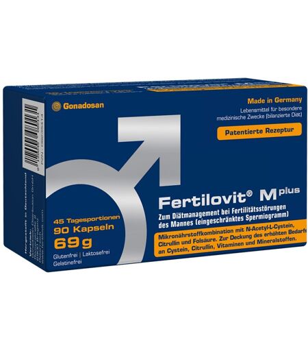 Anwendungsgebiet von Fertilovit M Plus KapselnFertilovit M Plus Kapseln zum Diätmanagement bei Fertilitätsstörungen des Mannes ( eingeschränktes Spermiogramm).Wirkungsweise von Fertilovit M Plus KapselnEine gesunde Lebensführung und Ernährung kommt auch der Fruchtbarkeit zugute, da die Spermien immer wieder neugebildet werden, kann ein gesunder Mann seine Spermienmenge und -qualität immer wieder durch seinen Lebensstil positiv beeinflussen. Eine gesunde Lebensführung mit einer ausgewogenen Ernährung, die reich ist an Antioxidantien und anderen Vitalstoffen, die wichtig für die Zellteilung im Allgemeinen und die Spermienentwicklung im Besonderen sind, kann dabei einen wichtigen Beitrag zur reproduktiven Fitness leisten. Manchmal fällt es im Alltag mit seinen vielfältigen Belastungen in Beruf und Freizeit jedoch schwer, angemessen auf eine gesunde und ausgewogene Ernährung zu achten. Dann kann die zusätzliche Zufuhr von speziellen Nährstoffen über Produkte mit Fertilovit M Plus Kapseln sinnvoll sein. Als Antioxidantien bezeichnet man Vitalstoffe, die die Erbinformation, Eiweiße und/oder Fette aller Körperzellen (auch der Spermien) vor oxidativem Stress schützen können. Hierzu gehören unter anderem die Vitamine C und E. Vitamin C ist das Hauptantioxidans in der Samenflüssigkeit (Seminalplasma), es wird vom Körper jedoch relativ schnell wieder ausgeschieden, weshalb ein Großteil des verzehrten Vitamin C seine positive Wirkung nicht voll entfalten kann. Fertilovit M Plus Kapseln enthält daher Vitamin C in Depotform, sodass Sie von einer kontinuierlichen Freisetzung und damit längeren Wirkdauer profitieren können. Vitamin E als fettlösliches Vitamin schützt zusätzlich insbesondere die Zellmembranen vor Sauerstoffradikalen. Es ist unumstritten, dass insbesondere die Spurenelemente Selen und Zink für die männliche Fruchtbarkeit von großer Bedeutung sind. Zink ist ein essentielles Spurenele ...