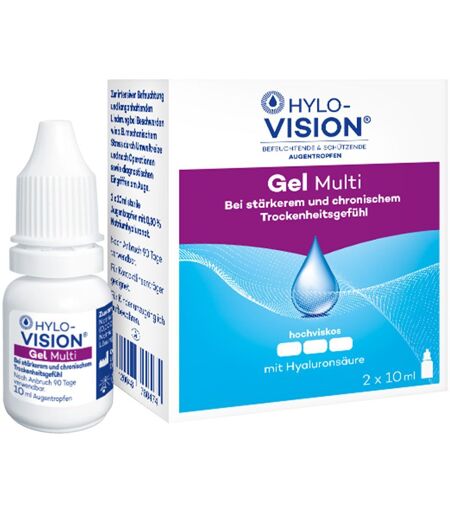 HYLO-VISION® Gel Multi Augentropfen sind für die intensive Befeuchtung und den langanhaltenden Schutz der Augenoberfläche geeignet. Sie werden bei stärkerem und chronischem Trockenheitsgefühl angewendet, verursacht durch Kontaktlinsen, visuelle Belastungen, Umwelteinflüsse oder nach diagnostischen und chirurgischen Eingriffen am Auge. Anwendung Träufeln Sie 1 bis 2 Tropfen HYLO-VISION® Gel Multi in den Bindehautsack jedes Auges. Die Anwendung kann nach Bedarf erfolgen. Bei Verwendung mit Kontaktlinsen sollten die Tropfen auf die Kontaktlinsen aufgebracht werden, bevor sie eingesetzt werden. Die Augentropfen können auch während des Tragens von Kontaktlinsen angewendet werden. Nach dem Öffnen ist die Flasche noch 90 Tage verwendbar. Zusammensetzung HYLO-VISION® Gel Multi enthält 0,3 % Hyaluronsäure. Die Augentropfen sind hochviskos, phosphatfrei und gut verträglich. Weitere Bestandteile sind: Hyaluronsäure Polyhexanid Wasser Hilfsstoffe zur Stabilisierung der Lösung ...