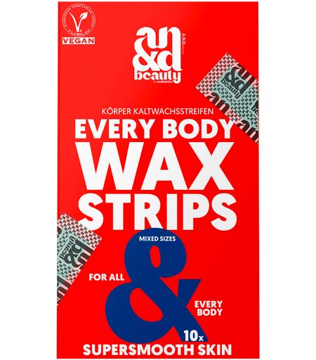 Glatt. Sauber. Ohne Aufwand. Dieses Every Body Wax Strips Set enthält: 10 x Body Wax Strips10 x Bikini Wax Strips4 x Cleaning Wipes4 x Calming Care Wipes Die Body Wax Strips von A.N.D. beauty sorgen für seidig-glatte Haut an Beinen und Co. – in Sekunden. Kein Aufwärmen, kein Kleckern. Einfach aufkleben, abziehen, fertig. Vegan und tierversuchsfrei. Anwendung: Strip erwärmen. Aufkleben. Abziehen. Rückstände mit Mizellenwassertuch entfernen. Mit Aftercare-Öltuch pflegen. ...