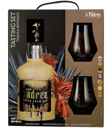 Padre Azul Super Premium Tequila Reposado 100% Agave 40% Vol. 0,7l in Geschenkbox mit 2 Gläsern
