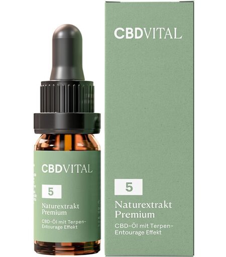 Nahrungsergnzungsmittel sind kein Ersatz für eine ausgewogene und abwechslungsreiche Ernährung und eine gesunde Lebensweise. CBD VITAL Naturextrakt Premium Öl 5 % Voller Terpen Entourage-Effekt Das CBD VITAL Naturextrakt PREMIUM Öl 5% stammt aus Cannabis-Sorten, die reich an Cannabidiol sind, aber von Natur aus einen besonders niedrigen THC-Gehalt aufweisen.Auf Pestizide und Herbizide wird dabei konsequent verzichtet. Eine spezielle Super-Soft Extraktion sorgt für hochkonzentrierte CBD-Öle, die das volle Pflanzenstoffspektrum enthalten. Permanente Analysen sorgen für gleichbleibende Qualität, reproduzierbare CBD-Gehalte und maximale Reinheit. Das Naturextrakt von CBDVITALhat Premium-Charakter, da das CBD zu 100% decarboxyliert und damit in seiner effektiven Form vorliegt. Durch den hohen Terpen-Gehalt bleibt der Entourage-Effekt erhalten. Als Entourage-Effekt wird das synergistische Zusammenspiel der Phytocannabinnoide mit Terpenen bezeichnet. Dadurch zeigt das Naturextrakt Premium oft einen vergleichsweise höheren Nutzen als Monopräparate. 500 mg Cannabidiol (decarboxyliert) pro 10 ml Ca. 300 Tropfen Freivon synthetischen Inhaltstoffen Bio zertifiziert Enthält das natürliche Pflanzenstoffspektrum (Terpen-Entourage-Effekt) Milder Geschmack Höchste Qualitätsstufe Mit Bio-Hanfsamenöl Zutaten: Bio-Hanfsamenöl, Bio-Hanfextrakt (reich an CBD (5%)), Bio-MCT-Öl. THC/THCA nicht nachweisbar (nach GC-MS) Verzehrempfehlung: 2 x 4 Tropfen ca. 1,52 mg CBD pro Tropfen. Verzehrempfehlung enthält < 60 μg THC. Inhalt: 500 mg CBD pro 10 ml. Vor Gebrauch schütteln! Hinweis: Die angegebene empfohlene tägliche Verzehrmenge darf nicht überschritten werden. Aufbewahrungshinweis: Kühl (6-25° C) und lichtgeschützt lagern. Außerhalb der Reichweite von kleinen Kindern aufbewahren. Nettofüllmenge: 10 ml 30 ml Hersteller: Vitrasan GmbH Gewerbepark Gleisdorf Süd Pirching 95/1 A-8200 Gleisdorf ...