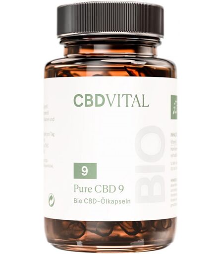 Anwendungsgebiet von Pure CBD 9 Kapseln CBD VITALPure CBD 9 Kapseln CBD VITAL - Bio CBD-Ölkapseln. Die Bio-CBD-Ölkapseln von CBD VITAL enthalten 9 mg Cannabidiol pro Kapsel. Das Cannabidiol stammt dabei ausschließlich aus CBD-reichem Nutzhanf in Bioqualität, der legal und frei von Pestiziden bzw. Herbiziden in der EU angebaut wird. Da die Kapseln ein natürliches Vollspektrum Öl mit natürlichem Cannabidiol-Gehalt aus Kaltpressung enthalten, sind diese eine ideale Alternative zu Naturextrakten bzw. Bio-Ölen mit 5% CBD. Um den Entourage-Effekt, also das hocheffektive Zusammenspiel verschiedener Pflanzenstoffe wie Terpene, Flavonoide und Phytocannabinoide, zu nutzen, beinhalten die Kapseln außerdem natürliches Hanfsamenöl. Hanfsamenöl liefert wertvolle essenzielle Fettsäuren und ist ausgezeichnet verträglich. Pure CBD Kapseln 9 mg natürliches CBD pro Kapsel 540 mg pro Packung (60 Kapseln) Voller Entourage-Effekt durch Hanfsamenöl Unkomplizierte Einnahme Leichtere Dosierung Ideal für unterwegs Pure Reinheit Frei von Rückständen wie Pestiziden, Fungiziden, Herbiziden oder Schwermetallen Frei von Laktose, Fruktose, Gluten Frei von Konservierungsstoffen oder künstlichen Farbstoffen Optimal bioverfügbar – maximal verträglich Vegan 100% Bio Wirkstoffe / Inhaltsstoffe / ZutatenPure CBD 9 Kapseln CBD VITAL enthält: Zutaten: Hanfsamenöl mit natürlichem CBD-Gehalt, Hydroxypropylmethylcellulose (Kapselhülle), D- Alpha-Tocopherol-Öl Inhaltsstoffe TD (1 Kapsel) % NRV* Vitamin E 4 mg 33% Hanfsamenöl 500 mg - mit natürlichem CBD 9 mg - *NRV = Nährstoffbezugswerte gemäß Verordnung (EU) Nr. 1169/2011.GegenanzeigenBei bekannter Überempfindlichkeit gegenüber einem der oben genannten Inhaltsstoffe sollte dieses Produkt nicht angewendet werden. DosierungVerzehrempfehlung von Pure CBD 9 Kapseln CBD VITAL: ...