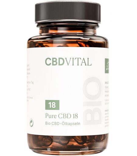 Anwendungsgebiet von Pure CBD 18 CBD VITAL Kapseln Pure CBD 18 CBD VITAL Kapseln - Bio CBD-Ölkapseln. Die Bio-CBD-Ölkapseln von CBD VITAL enthalten 18 mg Cannabidiol pro Kapsel. Das Cannabidiol stammt dabei ausschließlich aus CBD-reichem Nutzhanf in Bioqualität, der legal und frei von Pestiziden bzw. Herbiziden in der EU angebaut wird. Da die Kapseln ein natürliches Vollspektrum Öl mit natürlichem Cannabidiol-Gehalt aus Kaltpressung enthalten, sind diese eine ideale Alternative zu Naturextrakten bzw. Bio-Ölen mit 10% CBD. Um den Entourage-Effekt, also das hocheffektive Zusammenspiel verschiedener Pflanzenstoffe wie Terpene, Flavonoide und Phytocannabinoide, zu nutzen, beinhalten die Kapseln außerdem natürliches Hanfsamenöl. Hanfsamenöl liefert wertvolle essenzielle Fettsäuren und ist ausgezeichnet verträglich. Pure CBD Kapseln 18 mg natürliches CBD pro Kapsel 1080 mg pro Packung (60 Kapseln) Voller Entourage-Effekt durch Hanfsamenöl Unkomplizierte Einnahme Leichtere Dosierung Ideal für unterwegs Pure Reinheit Frei von Rückständen wie Pestiziden, Fungiziden, Herbiziden oder Schwermetallen Frei von Laktose, Fruktose, Gluten Frei von Konservierungsstoffen oder künstlichen Farbstoffen Optimal bioverfügbar – maximal verträglich Vegan 100% Bio Wirkstoffe / Inhaltsstoffe / ZutatenPure CBD 18 CBD VITAL Kapseln enthält: Hanfsamenöl mit natürlichem CBD-Gehalt, Hydroxypropylmethylcellulose (Kapselhülle), D- Alpha-Tocopherol-Öl Inhaltsstoffe TD (1 Kapsel) % NRV* Vitamin E 4 mg 33% Hanfsamenöl 500 mg - mit natürlichem CBD 18 mg - *NRV = Nährstoffbezugswerte gemäß Verordnung (EU) Nr. 1169/2011.GegenanzeigenBei bekannter Überempfindlichkeit gegenüber einem der oben genannten Inhaltsstoffe sollte dieses Produkt nicht angewendet werden. DosierungVerzehrempfehlung von Pure CBD 18 CBD VITAL Kapseln : 1 x 1 Kaps ...