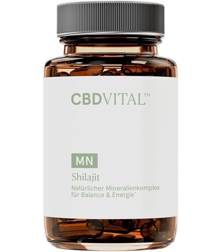 Anwendungsgebiet von CBD VITAL MN Shilajit Kapseln Mineralienkomplex für Balance und Energie mit 200 mg PrimaVie®-Shilajit pro Kapsel und Magnesium.Shilajit, auch unter dem Namen Mumijo bekannt, ist ein außergewöhnliches Naturharz, das sich über Jahrtausende hinweg im Hochgebirge des Himalayas aus pflanzlichen Reststoffen und Mikroorganismen gebildet hat. Reich an über 85 Mineralstoffen und Spurenelementen, wurde es bereits in der traditionellen indischen Heilkunst zur Förderung von Vitalität, innerer Stärke und allgemeinem Wohlbefinden geschätzt.Als Adaptogen unterstützt Shilajit Ihren Körper in Zeiten körperlicher und emotionaler Belastung – es hilft, besser mit Stress umzugehen und die innere Balance zu wahren. In Kombination mit Magnesium kann die spezielle Formel von CBD VITAL Shilajit dazu beitragen, Ihre Muskulatur und Knochensubstanz zu stärken und gleichzeitig Müdigkeit sowie Erschöpfung zu reduzieren.Besonders für Frauen während und nach den Wechseljahren bietet dieses Produkt eine wertvolle Unterstützung, wenn es um mehr Energie und körperliche Stabilität geht. Das enthaltene PrimaVie® Shilajit ist ein patentierter, klinisch getesteter Extrakt mit besonders hoher Reinheit und Wirksamkeit.Auch im sportlichen Bereich erfreut sich Shilajit großer Beliebtheit – vor allem bei Menschen, die ihre Ausdauer, Regeneration und Leistungsfähigkeit auf natürliche Weise optimieren möchten. Gesundheitlicher Nutzen der InhaltsstoffeMagnesium trägt zur Erhaltung normaler Knochen sowie zu einer normalen Muskelfunktionund zum Elektrolytgleichgewicht bei.Magnesium trägt zur Verringerung von Müdigkeit und Ermüdung bei sowie zu normalen psychischen Funktionen.Magnesium trägt zu einem normalen Energiestoffwechsel bei sowie zu einer normalen Eiweißsynthese.Magnesium trägt zu einer normalen Funktion des Nervensystems bei und hat eine Funktion bei der Zellteilung.Wirkstoffe / Inhaltsstoffe / ZutatenZutaten von CBD VITAL MN Shilajit ...