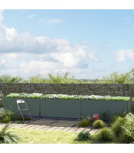 535 x 77 x 77 cm Hochbeet, Anthrazit: Ihrem Selbstversorger-Garten fehlt noch das gewisse Etwas, um Gurken, Kohlrabi und Radieschen optimale Wachstumsbedingungen zu bieten? Und auch Ihr Rücken schmerzt vom konventionellen Gärtnern? Wir haben die ideale Lösung! Mit diesem Kingsize-Hochbeet der Qualitätsmarke GFP in anthrazit und rechteckiger Form müssen Sie sich nicht mehr krumm machen. Das zeitgemäße Hochbeet weist eine Beethöhe von 0,77 und ein Gewicht von 22 mm auf und gilt als äußerst langlebig und wartungsfrei. Die robuste Aluminium-Konstruktion (ca. 22 mm starke Aluminiumplanken) – "Designed in Austria" – garantiert einen stabilen Stand und das zweckmäßige Stecksystem erleichtert den Aufbau. Erhältlich ist das Hochbeet in vier unterschiedlichen Breiten: ca. 77 cm, 99 cm, 119 cm oder 150 cm. Profitieren Sie zudem von 15 Jahren Garantie auf den Aluminium-Rahmen. Ihr eigenes Obst und Gemüse im Garten anzubauen ist Ihr Hobby? Den Selbstversorger-Traum zu leben, erfüllt Sie mit Kreativität, die Sie gerne noch weiter ausleben möchten? Dann ist dieses 0,77x5,35m große Kingsize-Hochbeet der Qualitätsmarke GFP genau das richtige Modell für Sie, denn: Es ist modular erweiterbar. Möchten Sie in Zukunft gerne noch mehr Pflanzen anbauen, lässt sich das Hochbeet flexibel erweitern. Es stehen Ihnen vier Breiten-Varianten zur Erweiterung zur Auswahl: 77 cm, 99 cm, 119 cm und 150 cm. Apropos Größe: Mit einer Grundfläche von ca. 4.1195m² bietet dieses Kingsize-Hochbeet ausreichend Platz für den Anbau von Obst, Gemüse, Kräutern, Blumen, sowie Mischkulturen. Dank der Höhe von ca. [size_height] gewährleistet dieses moderne Modell in der Farbe anthrazit zudem einen rückenschonenden Obst- und Gemüseanbau, ganz ohne Bücken. Gerade, wenn Sie eine längere Zeit am Stück mit der Bepflanzung oder Ernte beschäftigt sind, wird Ihnen diese Höhe zugutekommen. Da das Hochbeet in Schichten angelegt wird, profitieren Sie generell von vielen Möglichkeiten der Bepflanzung. Dank der Verrottung der einzelnen Schichten entsteht im Beet eine innere Wärme, welche das Pflanzenwachstum begünstigt. Der nährstoffreiche Boden führt demzufolge zu einem reichen und gesunden Pflanzenwachstum. Beim Wachstum spielt aber auch das Wetter, sowie die Qualität eine Rolle. Feuchtigkeit und Witterung wird nicht von allen Pflanzen vertragen – aus diesem Grund ist dieses Kingsize-Hochbeet aus Metall gefertigt und nicht aus z.B., Holz. Hochbeete aus Holz sind sehr pflege- und wartungsbedürftig, anfällig auf Schädlinge und witterungsempfindlich. Metall hingegen ist sowohl pflegearm bei hoher Lebensdauer, resistent gegen Schädlingsbefall als auch witterungsbeständig. Speziell besteht die Konstruktion von diesem Hochbeet aus korrosionsbeständigem Aluminium und ist äußerst stabil, wetterfest und ist somit für die ganzjährige Nutzung konzipiert. Es kommen ca. 22 mm starke Planken aus Aluminium zum Einsatz, die bauchigen Verformungen keine Chance bieten. Luftkammern sorgen zudem für eine isolierende Wirkung.... ...