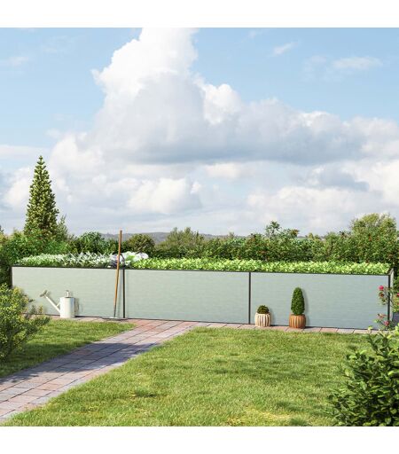 579 x 119 x 77 cm Hochbeet, Aluminium eloxiert: Ihrem Selbstversorger-Garten fehlt noch das gewisse Etwas, um Gurken, Kohlrabi und Radieschen optimale Wachstumsbedingungen zu bieten? Und auch Ihr Rücken schmerzt vom konventionellen Gärtnern? Wir haben die ideale Lösung! Mit diesem Kingsize-Hochbeet der Qualitätsmarke GFP in aluminium und rechteckiger Form müssen Sie sich nicht mehr krumm machen. Das zeitgemäße Hochbeet weist eine Beethöhe von 0,77 und ein Gewicht von 22 mm auf und gilt als äußerst langlebig und wartungsfrei. Die robuste Aluminium-Konstruktion (ca. 22 mm starke Aluminiumplanken) – "Designed in Austria" – garantiert einen stabilen Stand und das zweckmäßige Stecksystem erleichtert den Aufbau. Erhältlich ist das Hochbeet in vier unterschiedlichen Breiten: ca. 77 cm, 99 cm, 119 cm oder 150 cm. Profitieren Sie zudem von 15 Jahren Garantie auf den Aluminium-Rahmen. Ihr eigenes Obst und Gemüse im Garten anzubauen ist Ihr Hobby? Den Selbstversorger-Traum zu leben, erfüllt Sie mit Kreativität, die Sie gerne noch weiter ausleben möchten? Dann ist dieses 1,19x5,79m große Kingsize-Hochbeet der Qualitätsmarke GFP genau das richtige Modell für Sie, denn: Es ist modular erweiterbar. Möchten Sie in Zukunft gerne noch mehr Pflanzen anbauen, lässt sich das Hochbeet flexibel erweitern. Es stehen Ihnen vier Breiten-Varianten zur Erweiterung zur Auswahl: 77 cm, 99 cm, 119 cm und 150 cm. Apropos Größe: Mit einer Grundfläche von ca. 6.8901m² bietet dieses Kingsize-Hochbeet ausreichend Platz für den Anbau von Obst, Gemüse, Kräutern, Blumen, sowie Mischkulturen. Dank der Höhe von ca. [size_height] gewährleistet dieses moderne Modell in der Farbe aluminium zudem einen rückenschonenden Obst- und Gemüseanbau, ganz ohne Bücken. Gerade, wenn Sie eine längere Zeit am Stück mit der Bepflanzung oder Ernte beschäftigt sind, wird Ihnen diese Höhe zugutekommen. Da das Hochbeet in Schichten angelegt wird, profitieren Sie generell von vielen Möglichkeiten der Bepflanzung. Dank der Verrottung der einzelnen Schichten entsteht im Beet eine innere Wärme, welche das Pflanzenwachstum begünstigt. Der nährstoffreiche Boden führt demzufolge zu einem reichen und gesunden Pflanzenwachstum. Beim Wachstum spielt aber auch das Wetter, sowie die Qualität eine Rolle. Feuchtigkeit und Witterung wird nicht von allen Pflanzen vertragen – aus diesem Grund ist dieses Kingsize-Hochbeet aus Metall gefertigt und nicht aus z.B., Holz. Hochbeete aus Holz sind sehr pflege- und wartungsbedürftig, anfällig auf Schädlinge und witterungsempfindlich. Metall hingegen ist sowohl pflegearm bei hoher Lebensdauer, resistent gegen Schädlingsbefall als auch witterungsbeständig. Speziell besteht die Konstruktion von diesem Hochbeet aus korrosionsbeständigem Aluminium und ist äußerst stabil, wetterfest und ist somit für die ganzjährige Nutzung konzipiert. Es kommen ca. 22 mm starke Planken aus Aluminium zum Einsatz, die bauchigen Verformungen keine Chance bieten. Luftkammern sorgen zudem für eine isolierende... ...