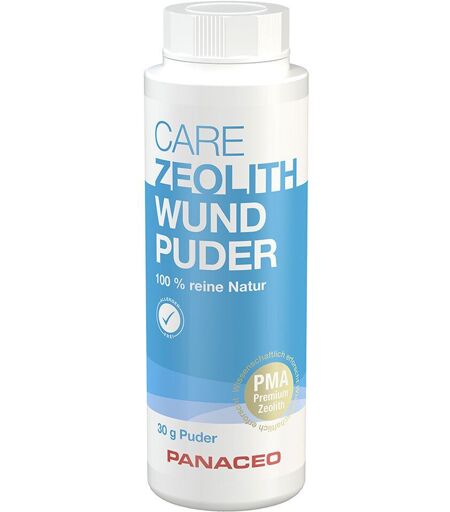PANACEO CARE Haut- und Wundpuder Allzeit bereit, wenn etwas passiert Unsere Haut ist wie ein Schutzmantel, der uns umgibt. Allerdings ist das Schutzorgan auch verletzlich und es kann jederzeit passieren, dass unsere Haut zusätzlich Unterstützung braucht, um wieder regenerieren bzw. heilen zu können. Der im PANACEO CARE ZEOLITH-WUNDPUDER wirksame PMA-Zeolith saugt durch die mikroporöse Struktur des kristallinen Natur-Minerals Wundsekrete (Exsudate) im Wundbereich auf. Dadurch wird die Wunde geschützt und die Wundheilung unterstützt. Die Anwendung von PANACEO CARE ZEOLITH-WUNDPUDER dient der schnellen Wundversorgung und ist bei Babys, Kleinkindern, Sportlern und älteren Menschen gleichermaßen beliebt. Vertrauen Sie auf die Kraft der Natur. Unterstützen Sie Ihre Wundheilung – in bewährter PANACEO Qualität. Sicher, wirksam und ganz natürlich. Warum PANACEO CARE ZEOLITH-WUNDPUDER? HILFT – Der PMA-Zeolith saugt Wundsekrete im Bereich der Wunde auf. SCHÜTZT – Die Wunde wird geschützt und vor negativen Einflüssen bewahrt. UNTERSTÜTZT – Die einzigartige Wirkweise unterstützt und begünstigt die Wundheilung. 100 % reine Natur. Mit dem einzigartigen PMA-Zeolith. Auch für Babys und Kleinkinder geeignet. Ideal für unterwegs. Anwendung Das PANACEO CARE ZEOLITH-WUNDPUDER eignet sich zur schnellen Wundversorgung, zum Schutz der Wunde und Begünstigung der Wundheilung. Es saugt durch die mikroporöse Struktur des verwendeten kristallinen vulkanischen Minerals Exsudate (Wundsekrete) im Wundbereich auf. Dadurch wird die Wunde geschützt und die Wundheilung unterstützt. Bei Bedarf etwas Wundpuder auf die Haut bzw. im Bereich kleinerer Wunden auftragen. Nicht öfter als 5-mal täglich anwenden und bis zur Abheilung der Wunde fortsetzen. Hinweise Das Medizinprodukt kann die ärztliche Versorgung nicht ersetzen. Im Zweifelsfall sind vor der Anwendung ein Arzt zu konsultieren und mögliche Wechselwirkungen abzuklären. Nicht bei offenen und klaffenden Wunden oder bei durchtrennter Dermis anwenden. Das Medizinprodukt darf nicht inhaliert (eingeatmet) und nicht am Auge angewendet werden. Außer Reichweite von Kindern unter 6 Jahren aufbewahren. Zusammensetzung 100 % PMA-Zeolith ...