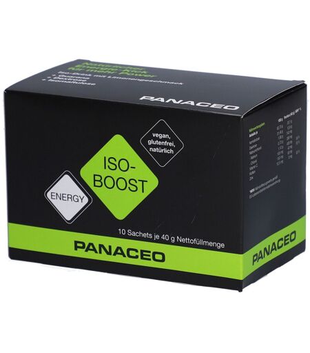 Bitte achten Sie auf eine abwechslungsreiche und ausgewogene Ernährung und eine gesunde Lebensweise.Panaceo Energy ISO-Boost Limonengeschmack PulverPanaceo Energy ISO-Boost ist ein isotonisches Getränkepulver mit Limonengeschmack, das speziell für körperliche Belastungen wie Training oder Wettkämpfe entwickelt wurde. Es enthält eine Kombination aus Natrium, Zink, Vitamin C und Guarana, die den Energiehaushalt unterstützt und den Körper mit wichtigen Nährstoffen versorgt.Zutaten:Isomaltulose, Dextrose, natürliches Aroma, Natriumchlorid, Acerolafruchtpulver, Guaranasamenextrakt, Zinkcitrat.Nährwertangaben: Nährwertangabepro 100 gpro Portion (40 g)NRV (%) Isomaltulose62,75 g25,1 g- Dextrose31,46 g12,6 g- Natrium0,73 g290 mg56 % Chlorid1,12 g450 mg- Vitamin C100 mg40 mg50 % Koffein150 mg60 mg- Zink12,5 mg5 mg50 % Verzehrsempfehlung:Einmal täglich oder bei körperlicher Belastung 2 gehäufte Esslöffel (ca. 40 g) in 500 ml Wasser auflösen und als isotonisches Getränk konsumieren.Aufbewahrungs- & Verwendungshinweis:Die empfohlene Tagesmenge darf nicht überschritten werden. Kühl (6-25 °C) und lichtgeschützt lagern. Außerhalb der Reichweite von Kindern aufbewahren.Nettofüllmenge:10 x 40 gHestellerdaten:Panaceo International GmbHFinkensteiner Straße 5A-9585 Villach-Gödersdorf ...