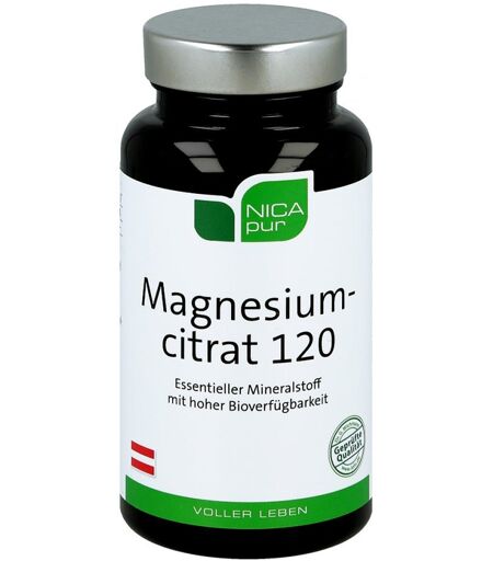 Anwendungsgebiet von Nicapur Magnesiumcitrat 120 KapselnNicapur Magnesiumcitrat 120 Kapseln sind ein Nahrungsergänzungsmittel mit dem Mineralstoff Magnesium in der organischen Citratverbindung, die sich durch eine gute Bioverfügbarkeit auszeichnet. Zur Aufrechterhaltung der Elektrolyt-Balance in den Zellen Für gesunde Nerven- und Muskelfunktionen Magnesium wird für einen gesunden Energiestoffwechsel benötigt und trägt zur Verringerung von Müdigkeit und Ermüdung bei Nicapur Magnesiumcitrat 120 Kapseln ist ohne Farbstoffe, laut Gesetz ohne Konservierungsstoffe. Ohne Gluten, ohne Laktose, ohne Fruktose. Für Diabetiker geeignet. Pflanzliche Kapselhülle (Vcaps®). 100% vegetarisch.Wirkstoffe / Inhaltsstoffe / ZutatenNicapur Magnesiumcitrat 120 Kapseln enthält: Zutaten: Magnesiumcitrat, Hydroxypropylmethylcellulose (Kapselhülle). Inhaltsstoffe pro Tagesdosis: 2 Kapseln % NRV* Magnesium 240 mg 64 Citrate 1360 mg - % der Referenzmenge nach EU Verordnung 1169/2011GegenanzeigenBei bekannter Überempfindlichkeit gegenüber einem der oben genannten Inhaltsstoffe sollte das Produkt nicht verwendet werden. DosierungAnwendungsempfehlung von Nicapur Magnesiumcitrat 120 Kapseln: Täglich 2 x 1 Kapsel mit viel Flüssigkeit zwischen den Mahlzeiten verzehren.HinweiseNahrungsergänzungsmittel sind kein Ersatz für eine ausgewogene und abwechslungsreiche Ernährung und eine gesunde Lebensweise. Die angegebene empfohlene tägliche Verzehrmenge darf nicht überschritten werden. Außerhalb der Reichweite von kleinen Kindern aufbewahren. Nicapur Magnesiumcitrat 120 Kapseln können in Ihrer Versandapotheke www.juvalis.de erworben werden. ...