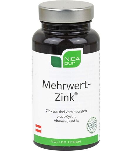 GegenanzeigenBei bekannter Überempfindlichkeit gegenüber einem der oben genannten Inhaltsstoffe sollte dieses Produkt nicht angewendet werden. HinweiseNahrungsergänzungsmittel sollten nicht als Ersatz für eine ausgewogene, abwechslungsreiche Ernährung und gesunde Lebensweise verwendet werden. Nicapur Mehrwert-zink Kapseln sollten außerhalb der Reichweite von Kindern aufbewahrt werden. Die täglich empfohlene Verzehrmenge sollte nicht überschritten werden. Nicht über 25 °C aufbewahren. Vor Licht und Feuchtigkeit schützen. Zu Risiken und Nebenwirkungen fragen Sie Ihre Ärztin, Ihren Arzt oder in Ihrer Apotheke. Sie dürfen das Mittel nach dem angegebenen Verfalldatum nicht mehr verwenden. Nicapur Mehrwert-zink Kapseln können in Ihrer Versandapotheke www.juvalis.de erworben werden. ...