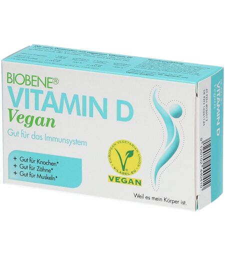 Nahrungsergänzungsmittel sind kein Ersatz für eine ausgewogene und abwechslungsreiche Ernährung und eine gesunde Lebensweise. BIOBENE® VITAMIN D Vegan ist ein wertvolles Nahrungsergänzungsmittel, das von Experten entwickelt wurde. Vitamin D trägt zur Funktions- und Gesunderhaltung des Immunsystems bei, sowie zur Erhaltung normaler Knochen zur Erhaltung einer normalen Muskelfunktion zur Erhaltung normaler Zähne Dies hat sogar die Europäische Behörde für Lebensmittelsicherheit in einem strengen wissenschaftlichen Prüfverfahren bestätigt. Die Bedeutung von VITAMIN D Das fettlösliche Vitamin D nimmt unter den Vitaminen eine Sonderstellung ein, weil es im menschlichen Körper durch Sonnenbestrahlung (UVB-Licht!) gebildet werden kann. Vitamin D regelt den Calcium- und Phosphatstoffwechsel und fördert dadurch die Mineralisierung und Härtung des Knochens. Darüber hinaus ist es an vielen weiteren Stoffwechselvorgängen im Körper beteiligt (wie zB Muskelstoffwechsel, Infektabwehr). Vitamin D kommt in zwei Formen vor, die zusammen auch als Calciferole bezeichnet werden. Es wird zwischen dem pflanzlichen Vitamin D2 (Ergocalciferol) und dem tierischen Vitamin D3 (Cholecalciferol) unterschieden. Lange Zeit gab es veganes Vitamin D nur als Vitamin D2, das vom Körper erst aufwendig umgewandelt werden musste. Vitamin D3 ist in der Regel tierischen Ursprungs (Wollwachs von Schafen) und ist nicht vegan. Das besondere an BIOBENE® VITAMIN D Vegan ist die pflanzliche Herkunft des Vitamin D3 - zu 100% rein pflanzlichen Ursprungs, hergestellt aus Algen. Zudem ist es chemisch ident mit Vitamin D3 tierischen Ursprungs und überzeugt hinsichtlich Qualität und Reinheit sowie Bioverfügbarkeit. Referenzwerte für VITAMIN D Vitamin D wird in μg (Mikrogramm) oder in internationalen Einheiten (IE) angegeben. 1 μg entspricht 40 IE bzw. 1 IE = 0,025 μg. BIOBENE® VITAMIN D Vegan wurde von der Veganen Gesellschaft Österreichs sowie von der British Vegan Society zertifiziert und trägt neben dem V-Label auch die Vegan Blume.Zutaten: Trennmittel: Magnesiumsalze der Speisefettsäuren Füllstoff: Cellulose, mikrokristalline Kapselhülle (Hydroxypropylmethylcellulose) Nährwerte: Durchschnittliche Nährwerte: pro 1 Kapsel NRV* pro 2 Kapseln NRV* Vitamin D 25 µg (1.000 IE) 500 % 50 µg (2.000 I.E) 1000 % Verzehrempfehlung:Abhängig vom persönlichen Vitamin D Wert, 1-2 Kapseln täglich zur Nahrungsergänzung mit einem Glas Flüssigkeit am besten zu oder nach einer fetthaltigen Mahlzeit über einen Zeitraum von mindestens 3 Monaten einnehmen.Hinweis:Die angegebene empfohlene tägliche Verzehrmenge darf nicht überschritten werden. Aufbewahrung: Kühl (6-25 °C) und lichtgeschützt lagern. Außerhalb der Reichweite von Kindern aufbewahren.Nettofüllmenge:60 KapselnHersteller:Natural Products & Drugs GmbHA - 9800 Spittal an der Drau Österreich ...