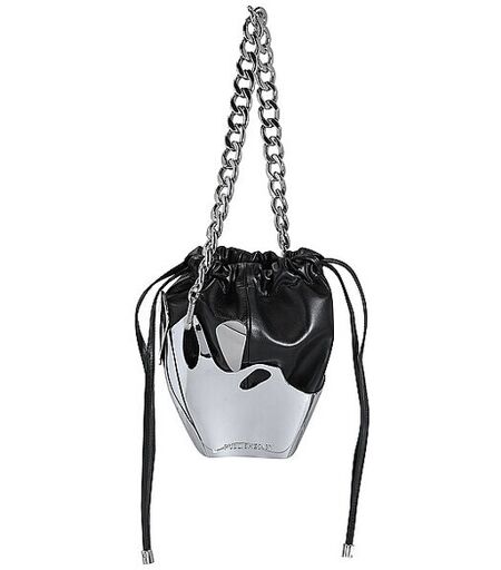 Beutelförmige Damen Tasche aus Leder Ein Hauptfach mit Kordelzug Logo-Prägung vorne Zwei abnehmbare Kettenriemen Chromdetails auf der Außenseite Farbbezeichnung: Black & Chrome Maße: B: 25 x H: 23 x T: 10 cm Material: 100% Rindsleder ...